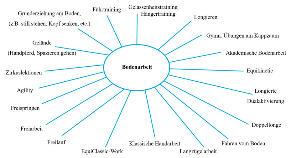 Unter Bodenarbeit versteht man alles, was man mit dem Pferd macht, ohne auf ihm zu sitzen. Die Ausbildung am Boden beginnt schon bei dem täglichen Umgang. Dazu gehören zum Beispiel das Aufhalftern, das Führen aus der Box oder von der Koppel, das Stillstehen am Putzplatz, braves Hufegeben oder das Verladetraining. Bodenarbeit ist somit ein wichtiger Bestandteil im Pferdetraining und in der Jungpferdeausbildung und sollte nicht zu kurz kommen.